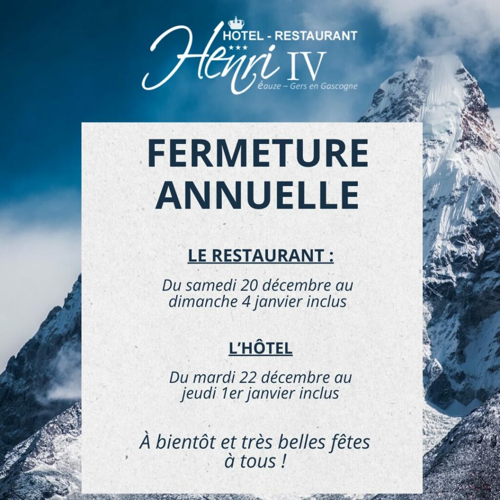 L’Hôtel*** Restaurant Henri IV fait une petite pause bien méritée pour célébrer les fêtes de fin d’année 🥳